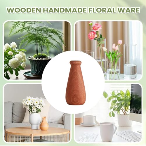 This decorative vase features a natural wood-effect finish and is styled with artificial flowers for display purposes. Designed for indoor decoration, it adds a warm and minimal touch to living spaces without the need for maintenance.